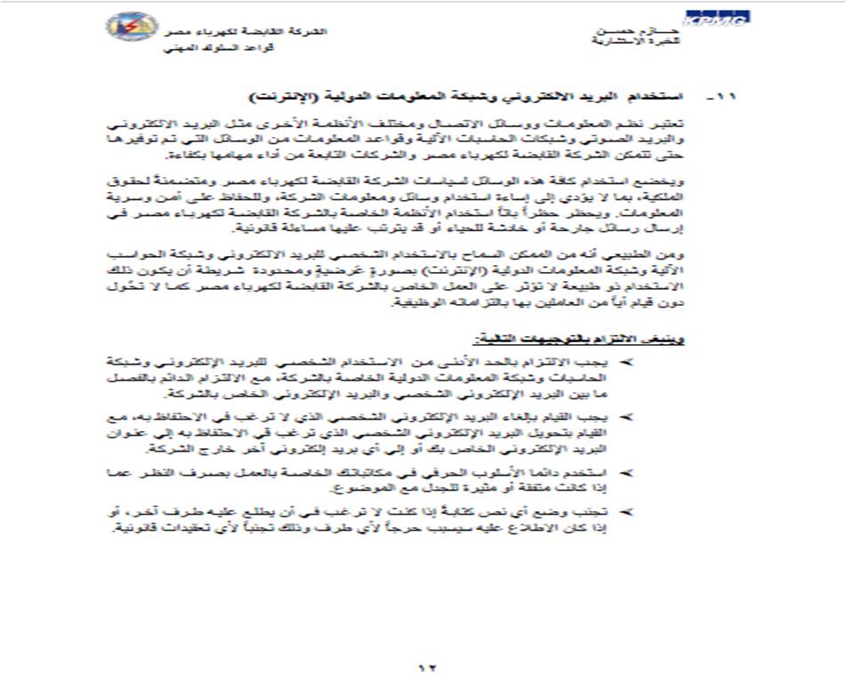 قواعد السلوك المهني للشركة القابضة: أضغط هنا