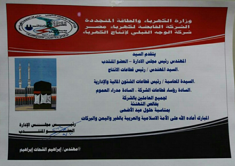 لجميع العاملين بالشركة بخالص التهنئة بمناسبة حلول عيد الأضحى المبارك