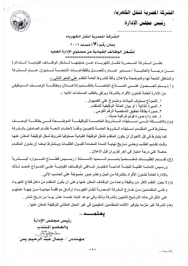 اعلان وظائف بالشركة المصرية لنقل الكهرباء......