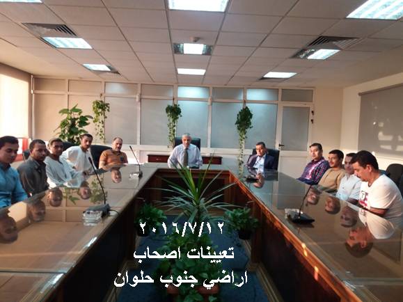 تنفيذا للاتفاقيات التي تمت مع اصحاب الاراضى وواضعي اليد لمشروع جنوب حلوان تم الانتهاء من تعيين مجموعة منهم كدفعة جديدة بناءا علي المستندات المقدمة منهم ووفقا للضوابط المتفق عليها وبعد اتخاذ جميع الموافقات الأمنية