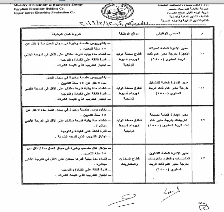 تعلن شركة الوجه القبلي لانتاج الكهرباء عن حاجتها للوظائف التالية:-