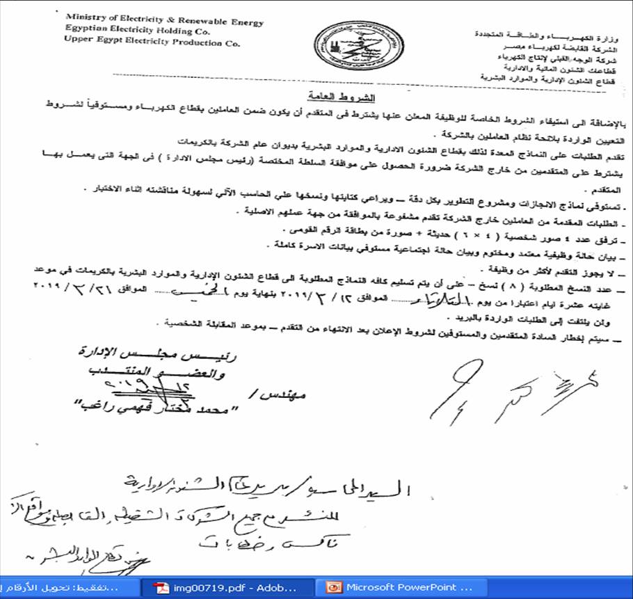 اعلان وظائف قيادية بشركة الوجه القبلي لانتاج الكهرباء...........