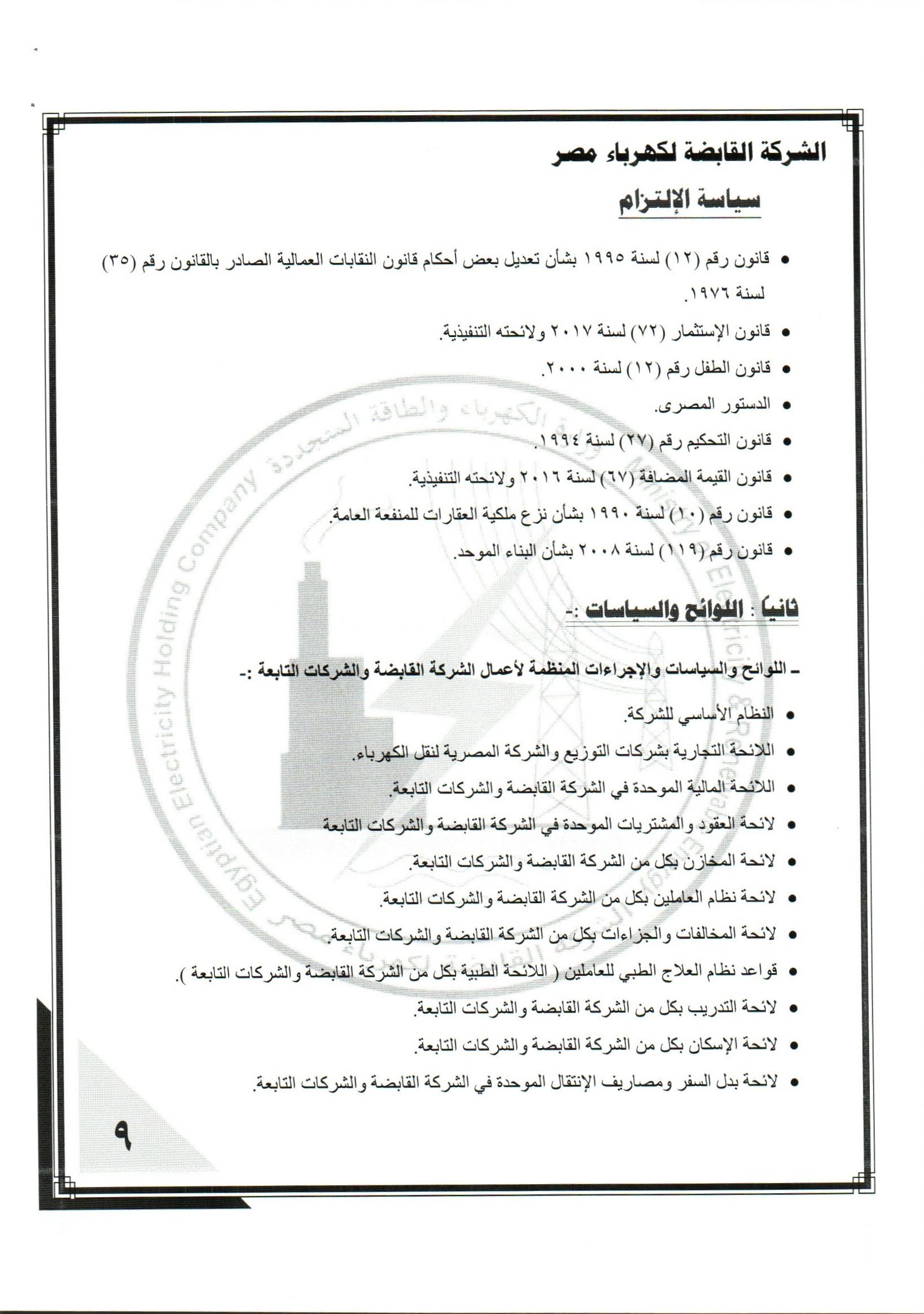 اللائحة التنظيمية للشركة القابضة وشركاتها التابعة